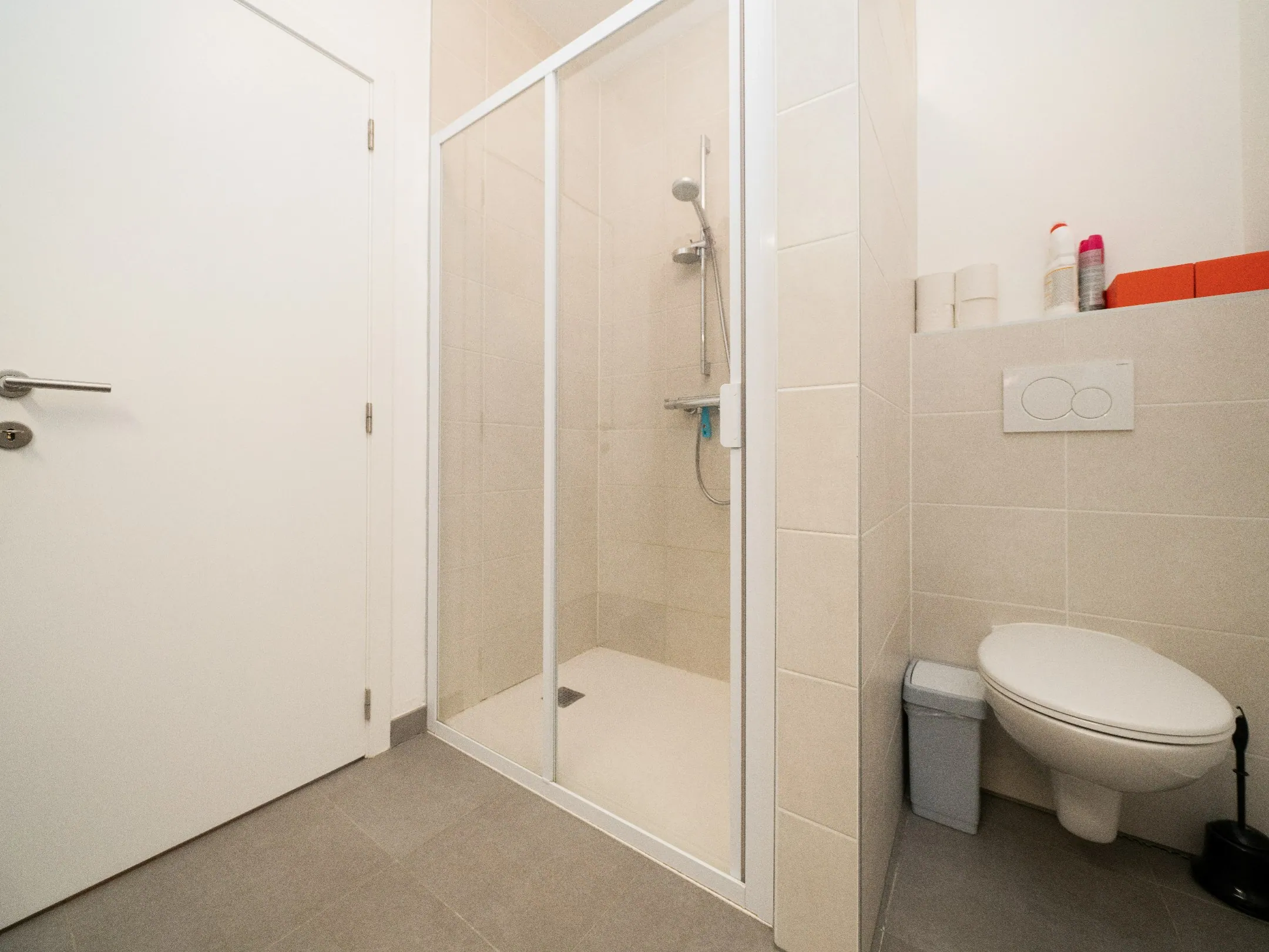 Tof om te weten: het gebouw dateert van 2019 en komt dus met alle nodige comfort: vloerverwarming, ventilatiesysteem C, 3 zonnepanelen, conforme elektrische installatie en het zal je niet verbazen… maar er blinkt een A op het EPC! Voorts is er een gemeenschappelijke regenwaterput voorzien en zijn er zeer lage gemeenschappelijke kosten van €50/maand.