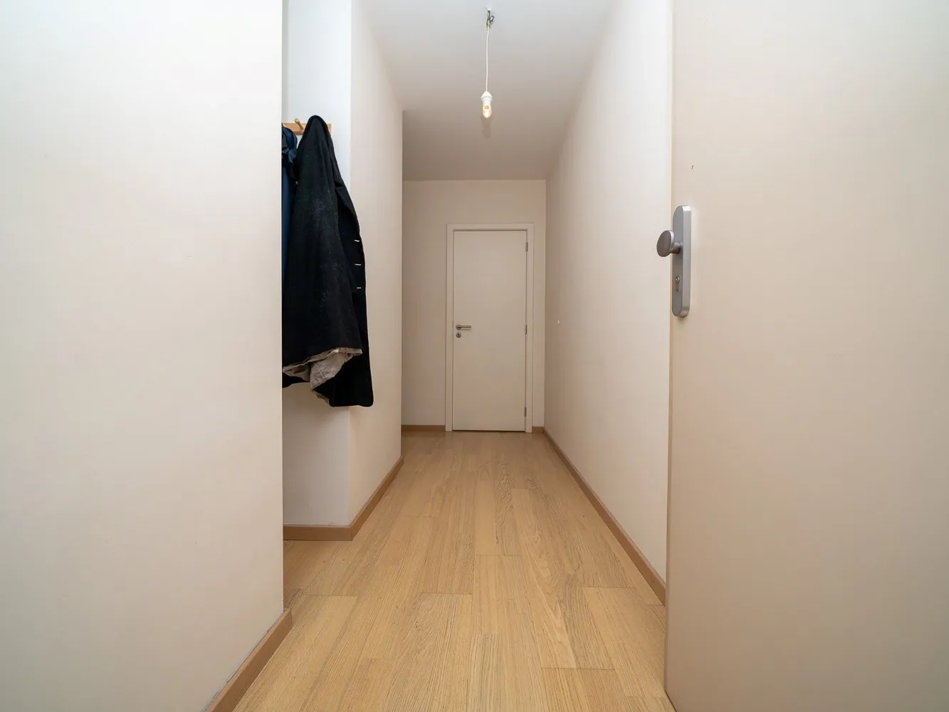 In de inkomhal bevindt zich een afzonderlijk toilet met handwasser en een praktische opbergruimte waar zich de aansluitingen voor wasmachine/droogkast bevinden, alsook een vestiairehoekje.