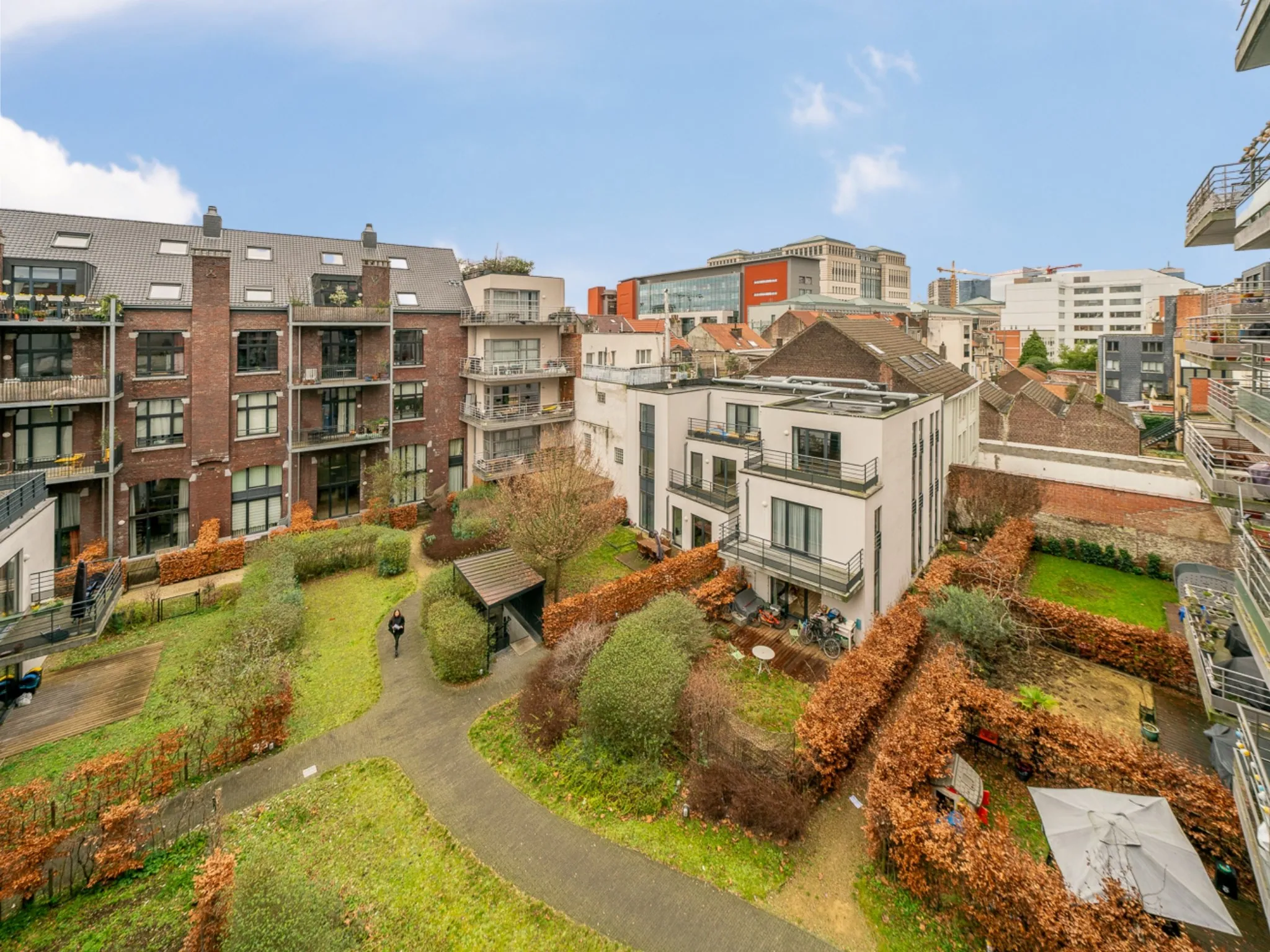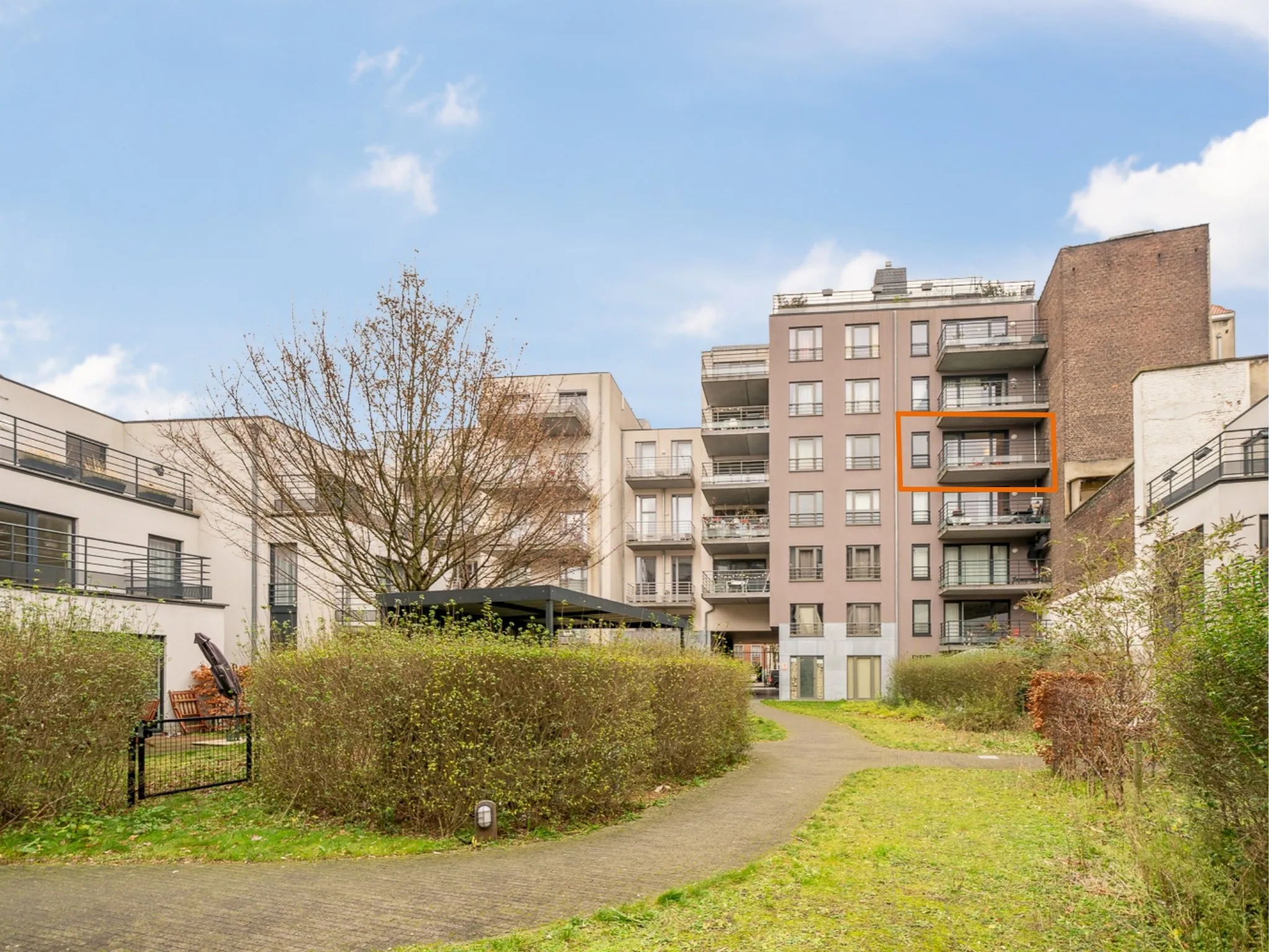 Het appartement is gelegen op de 4de verdieping, aan de achterzijde van het gebouw met zicht op de groene binnenplaats. Met zijn uitstekende ligging nabij alle faciliteiten combineert u hier het gemak van de stad, doch in alle rust. Inbegrepen in de verkoop zit een ondergrondse staanplaats en privatieve kelder.