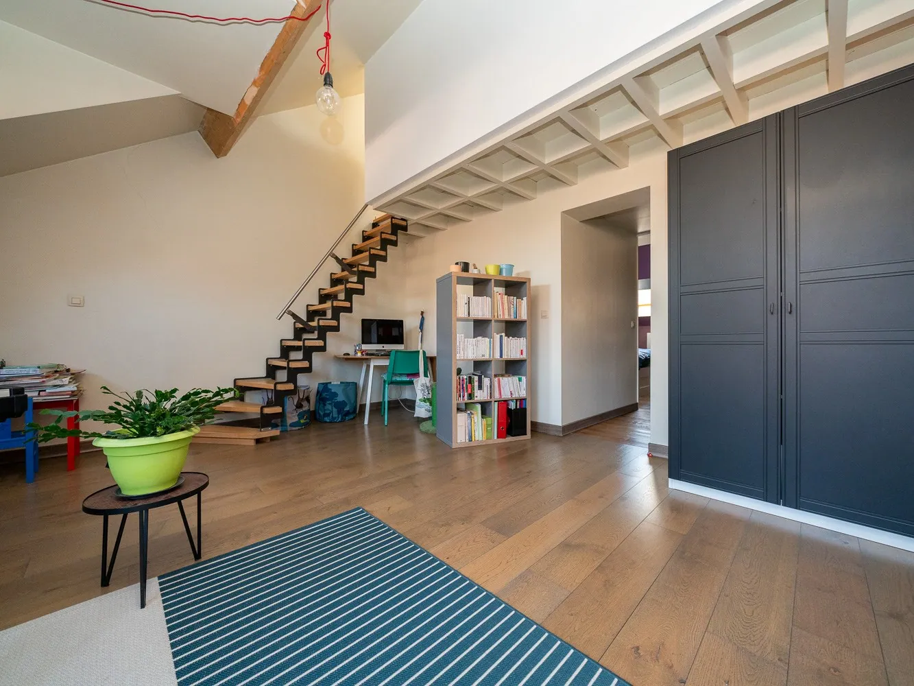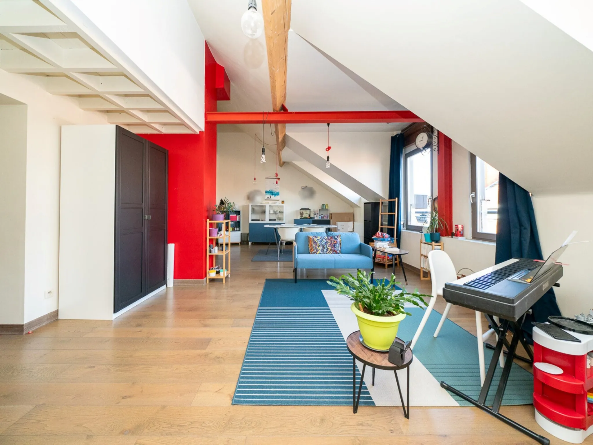 Deze lichtrijke loft van 103m² is gelegen in een voormalige fabriek (Brasserie Carlier), omgevormd tot een uniek woonproject in 2007.