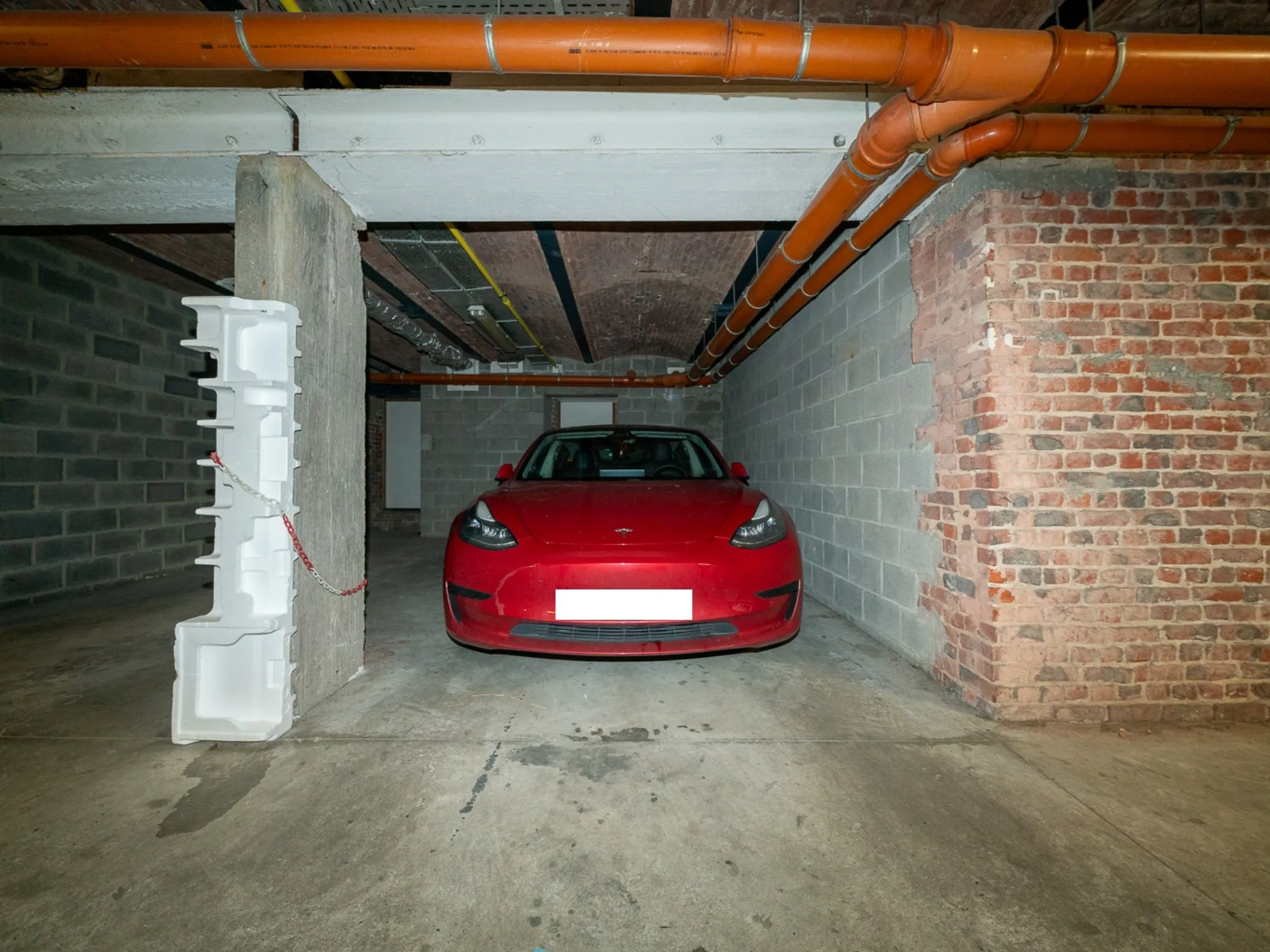 Inbegrepen in de verkoop zit een bruikbare privatieve kelder (12m²). Verplicht bij aan te kopen is een overdekte autostaanplaats voor €25.000.