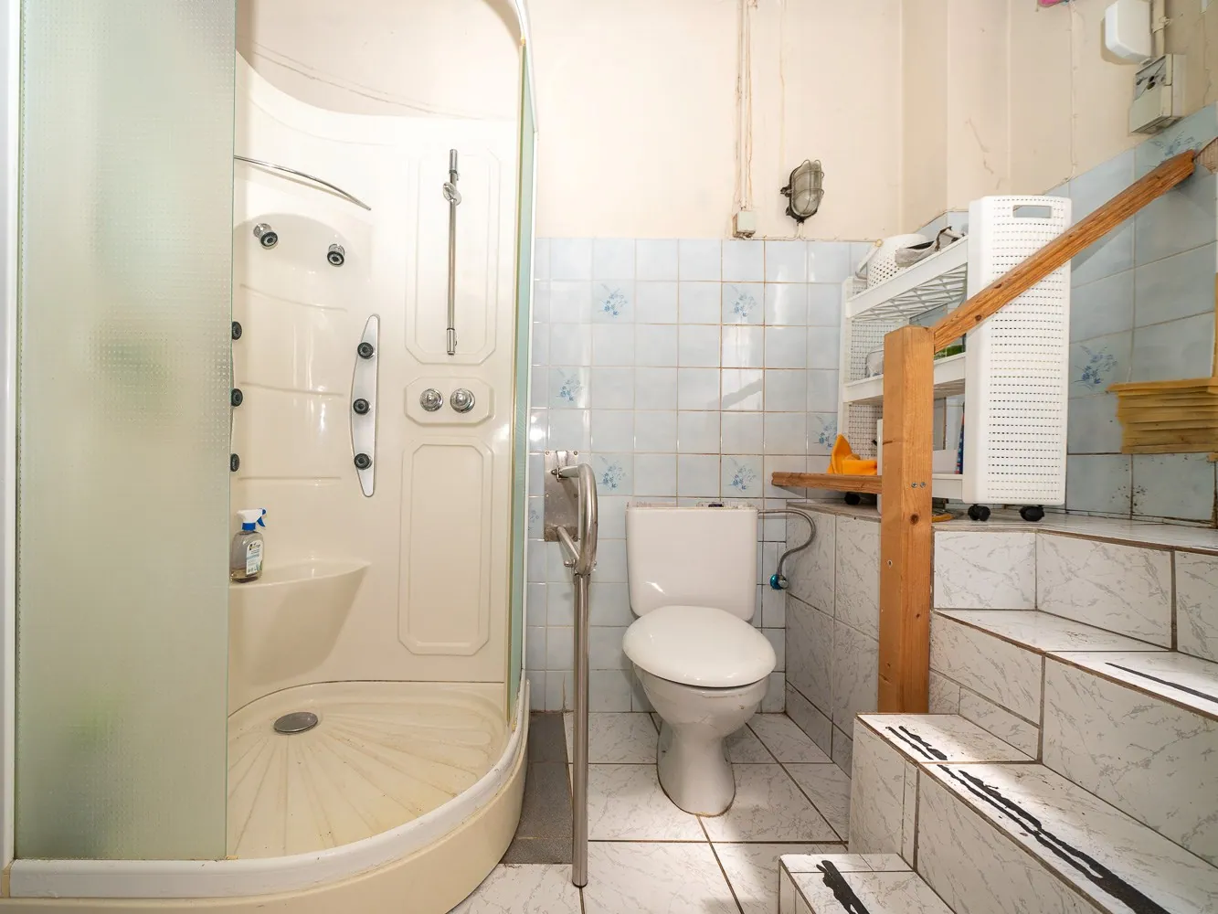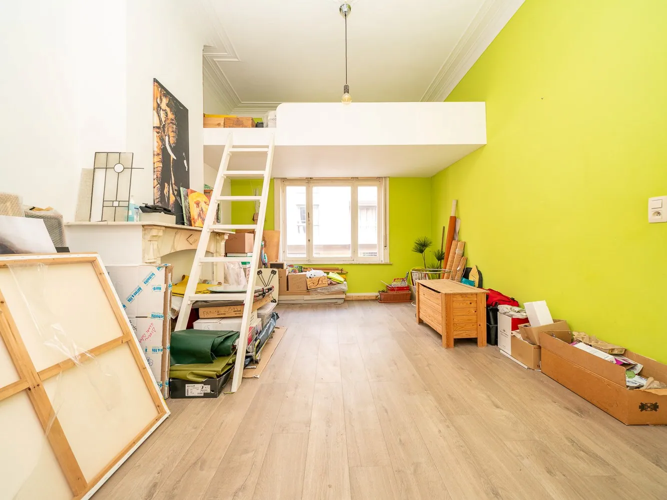De studio op de eerste verdieping is telt vandaag 28m², maar kan mits enkele werken eventueel worden uitgebreid tot 48m².