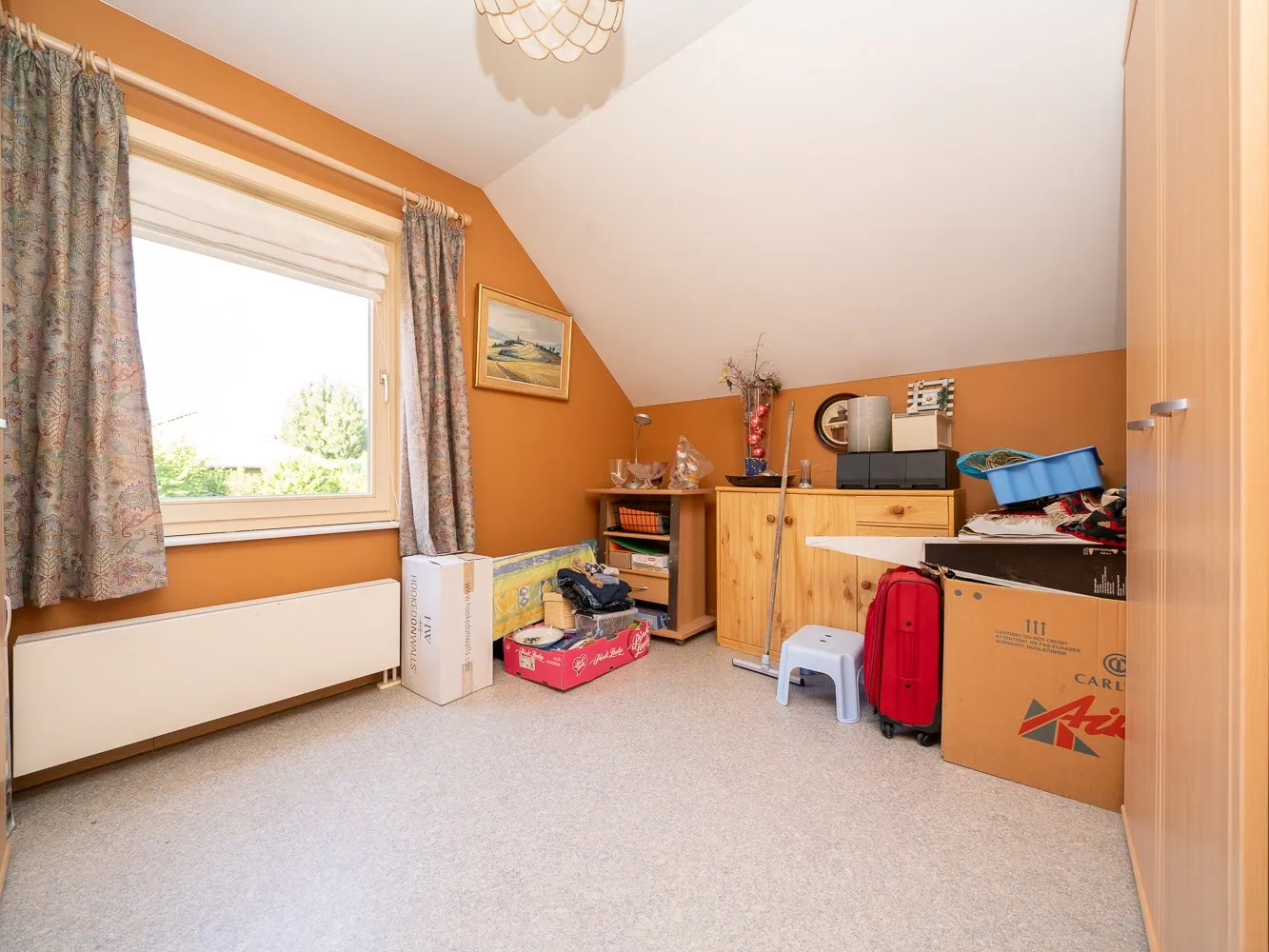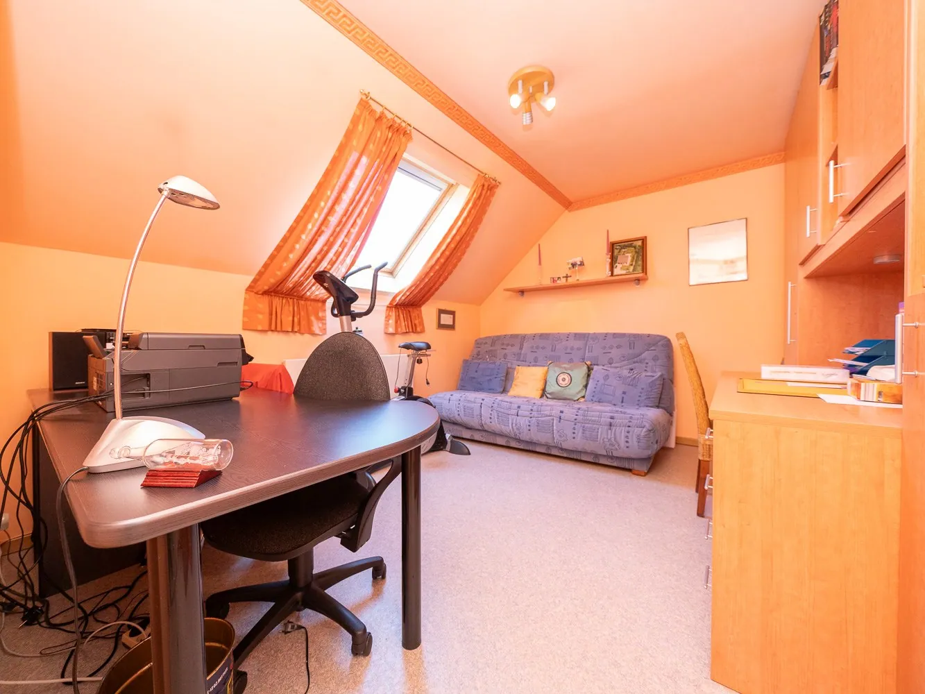 De verdieping omvat 4 slaapkamers (9,5 – 10,5 – 12,5 - 17m²) met naastgelegen de badkamer (8m²) voorzien van een douche en dubbele wastafel en een tweede, afzonderlijk toilet. Alle gebruikte materialen zijn van degelijke kwaliteit en de woning werd zeer goed onderhouden.
