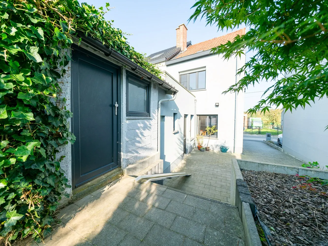 Vanuit de keuken heb je toegang tot de schitterende, diepe tuin. Een heerlijke tuin want hier heb je meer dan voldoende ruimte om al je vrienden en familie te ontvangen en jij kiest waar: op het betegelde terras vooraan, met de voeten in het gras of met het gezicht in de zon. De oprit links van de woning is ontzettend handig: je kan de fietsen makkelijk in de tuinberging zetten en geen gedoe met bijvoorbeeld (tuin)afval.