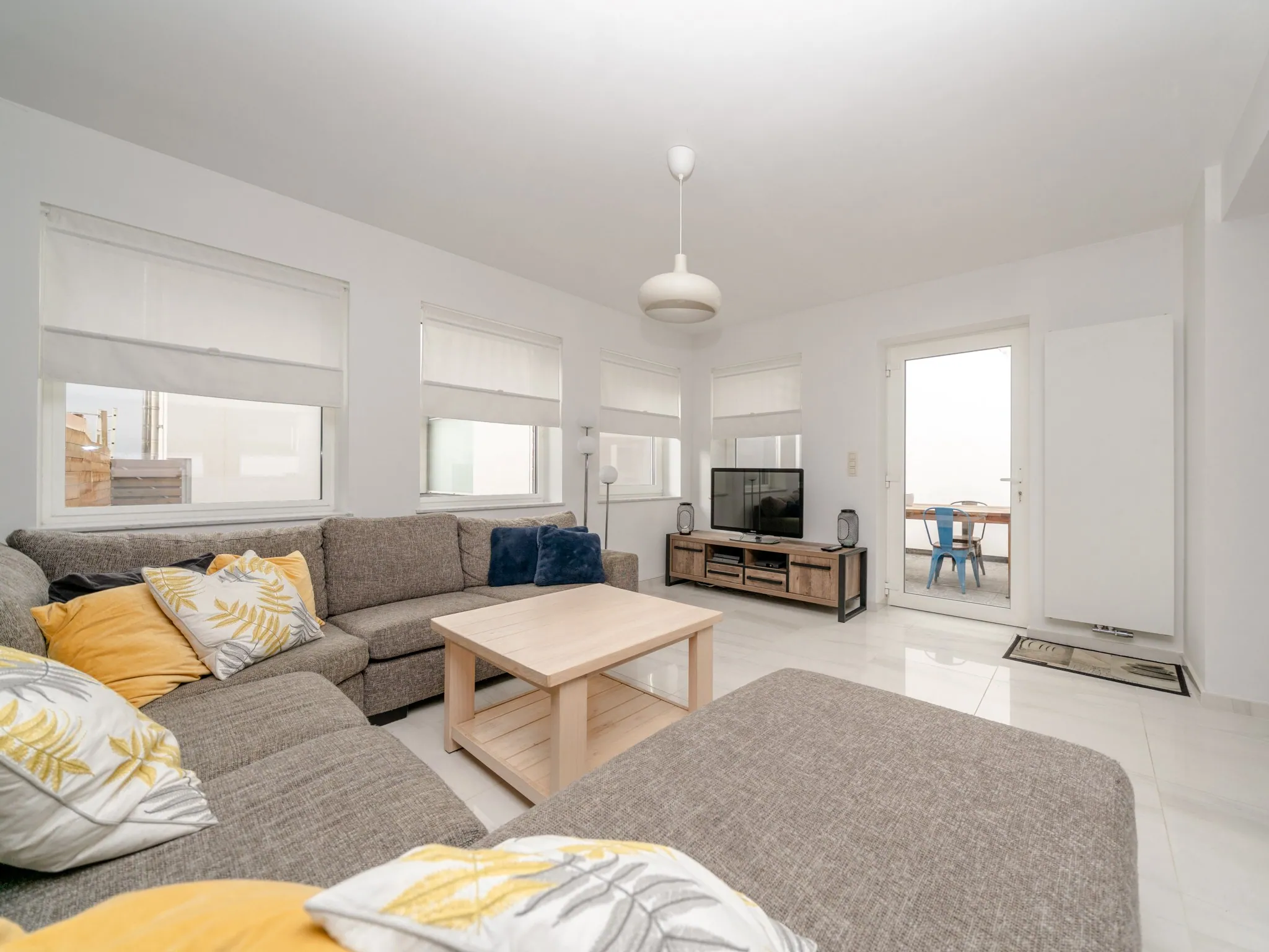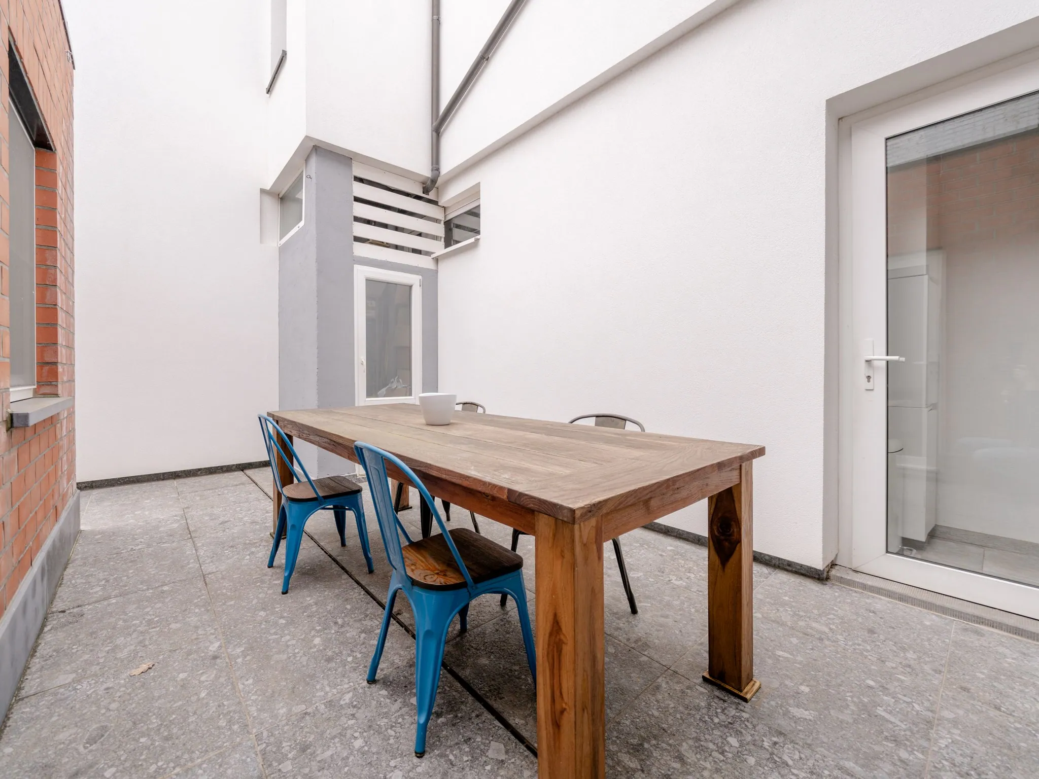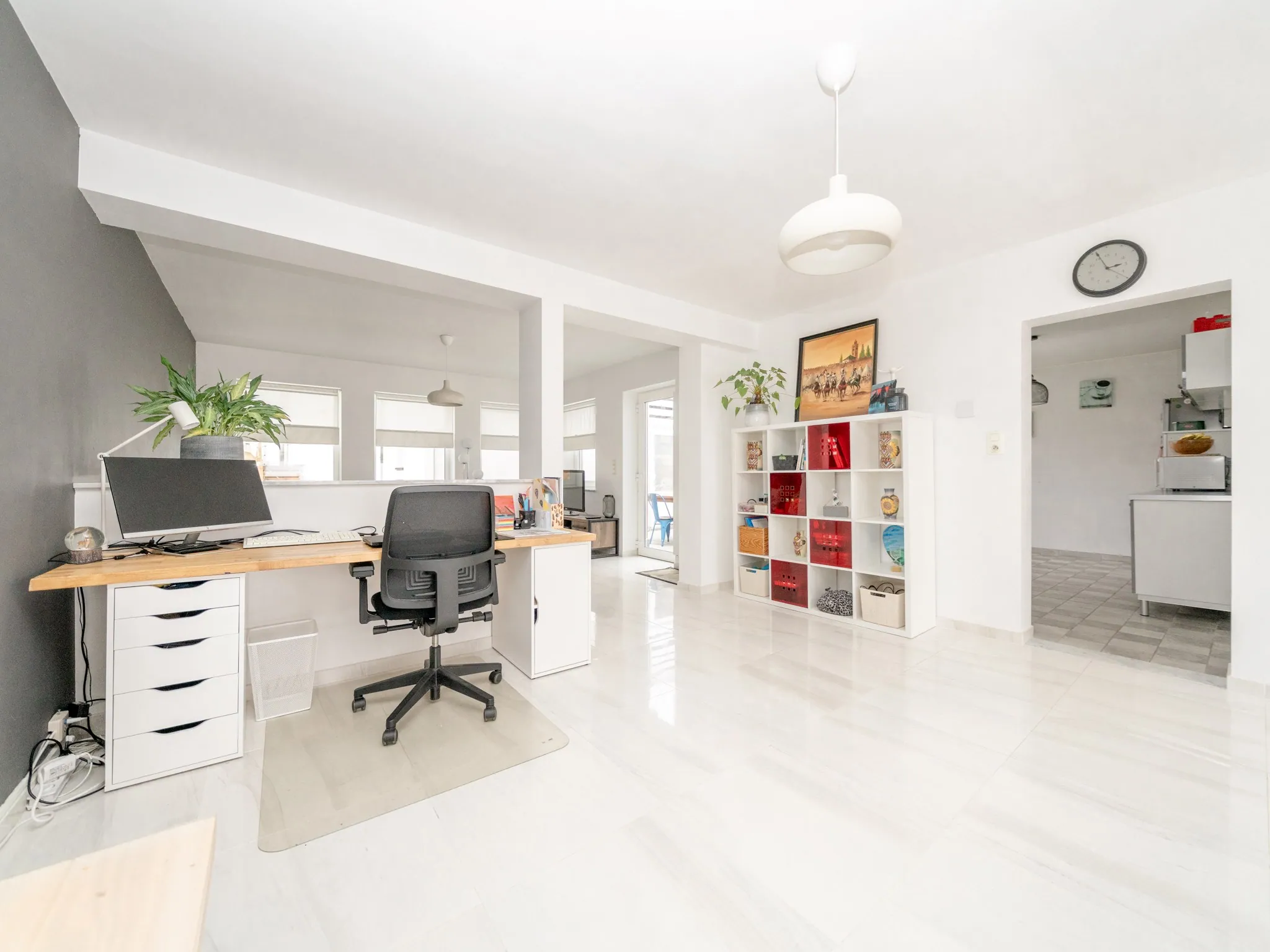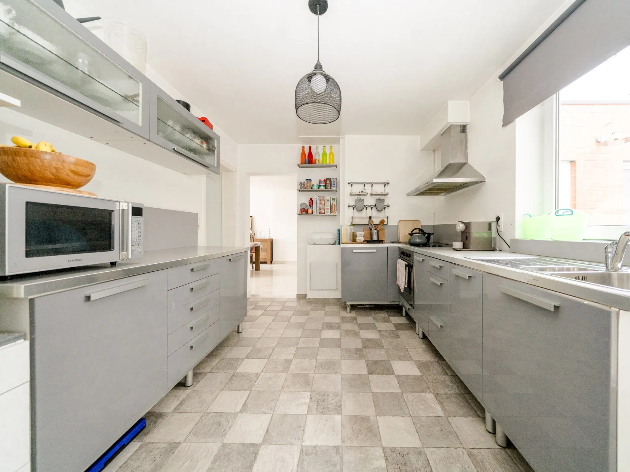 De keuken is een aparte ruimte: ideaal want je blijft in connectie met wat er in de leefruimte gebeurt, terwijl je eventuele rommel toch uit het zicht houdt. Aansluitend op de keuken vind je een cosy terras op recent vernieuwde tegels. Handig: het terras is voorzien van een praktische berging.