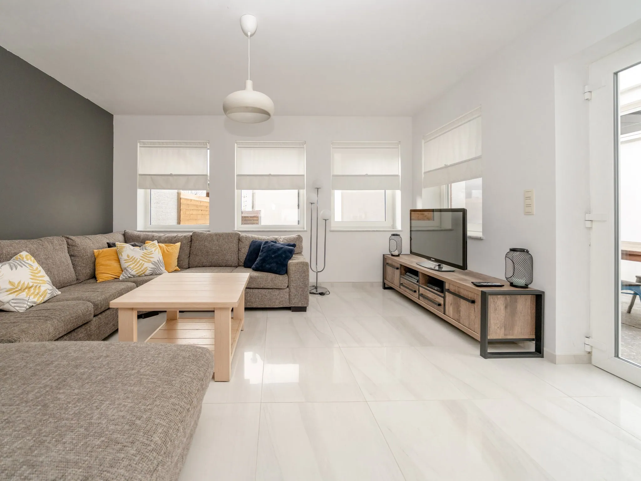 De leefruimte is een mooie open ruimte van maar liefst 43m².