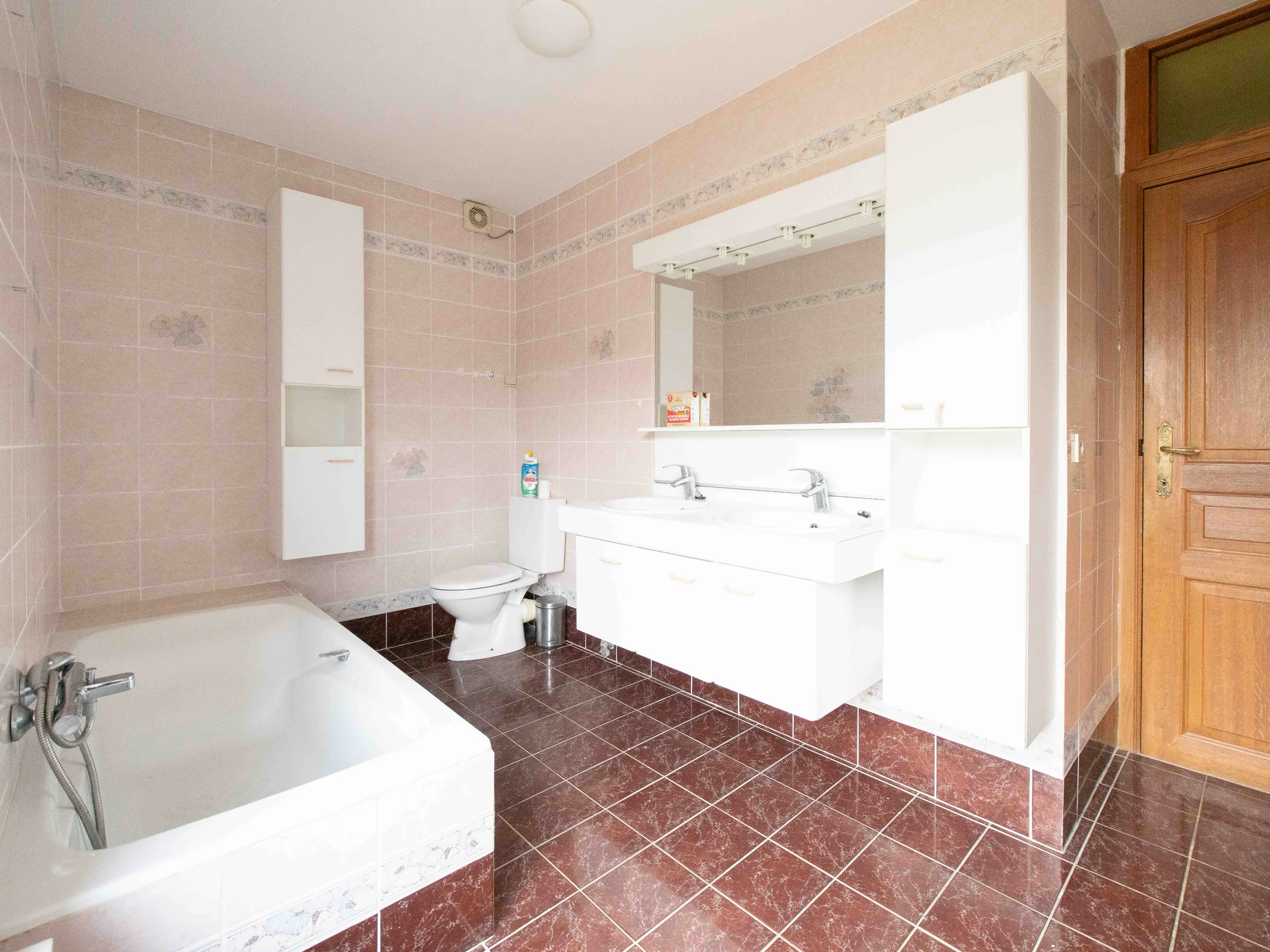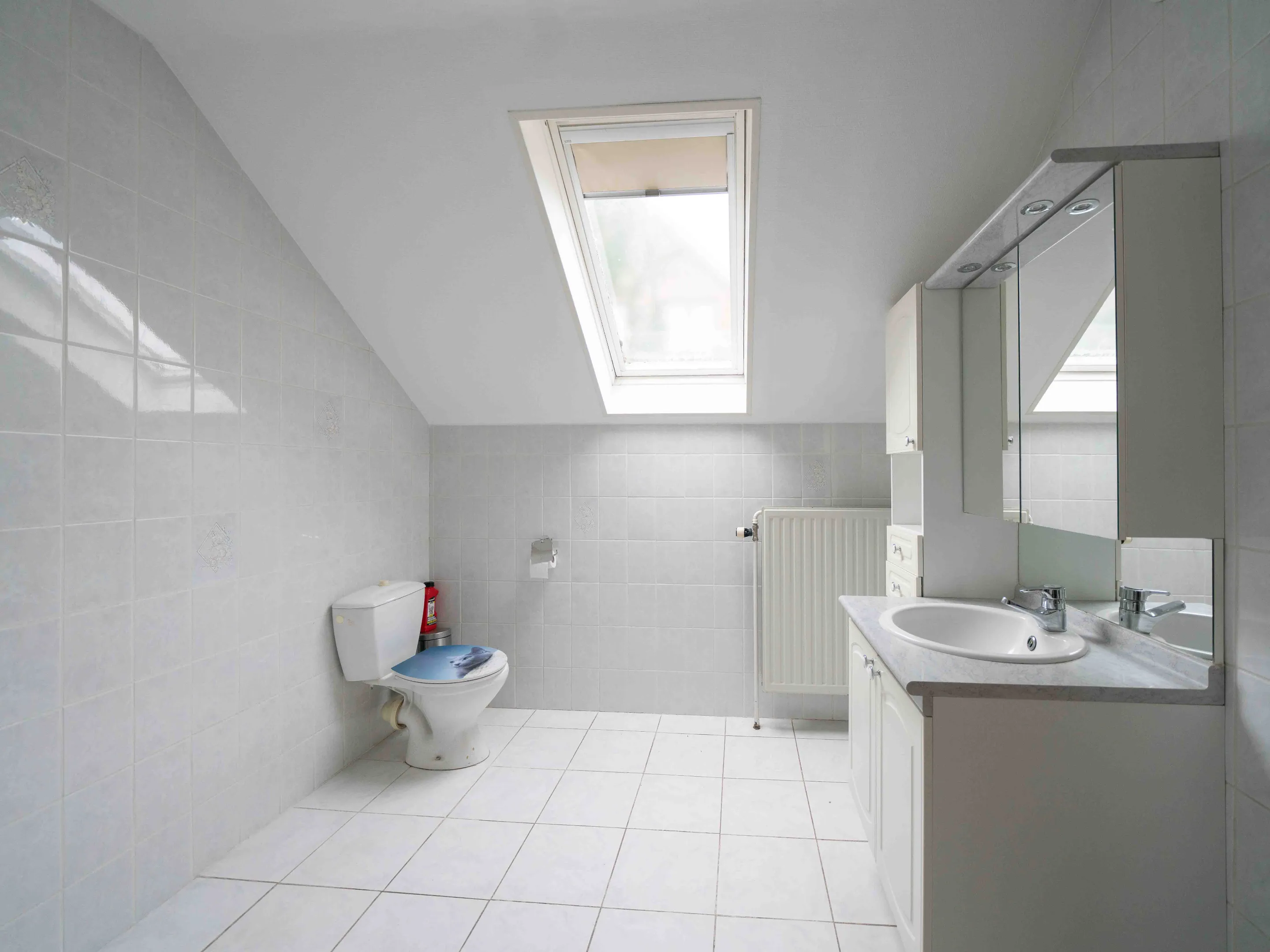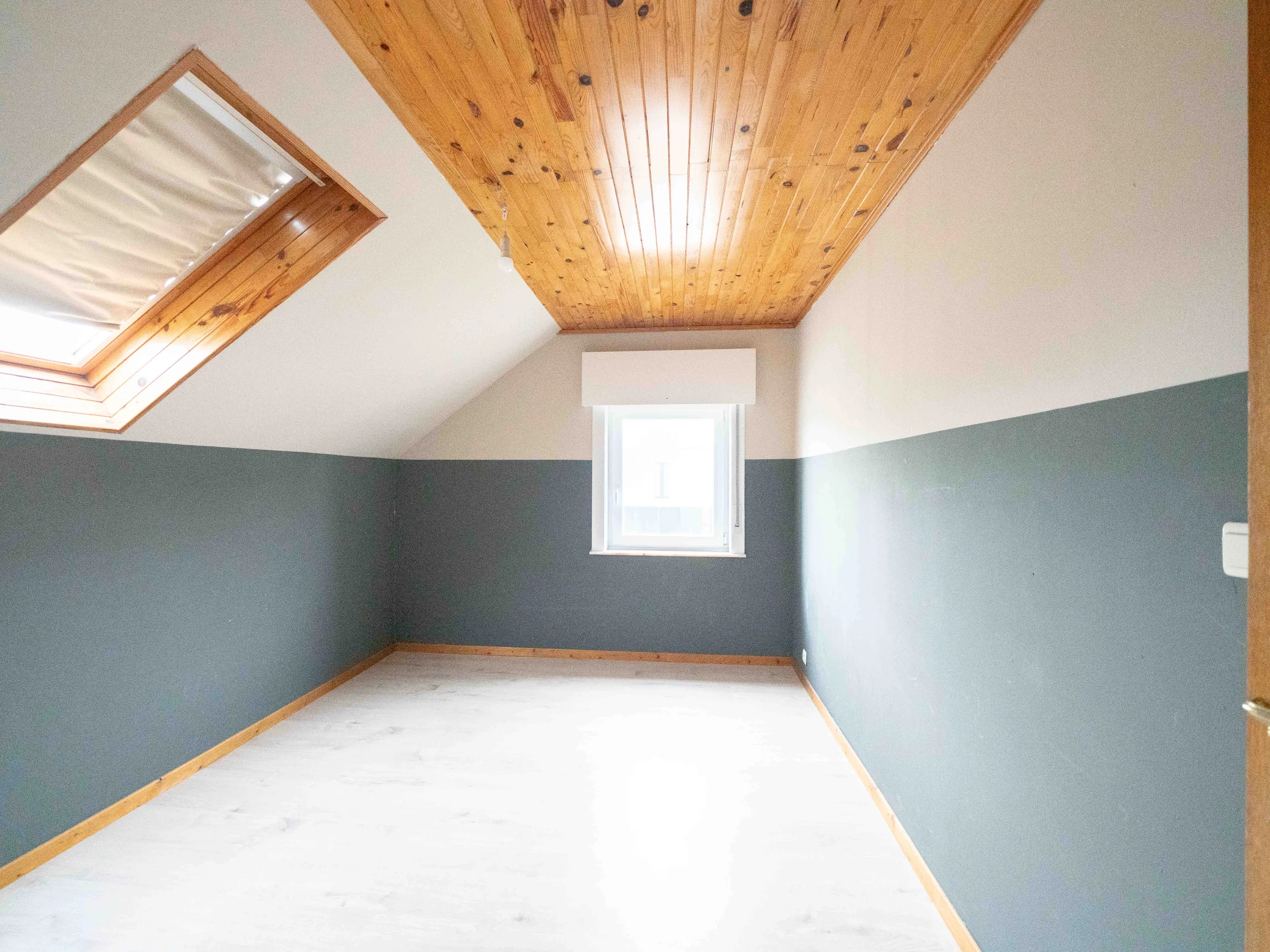 Begeven we ons naar de verdieping dan vinden we daar 3 mooie kamers (12,4 - 15 - 17m²) en een tweede badkamer (8m²) met enkele wastafel, regendouche en toilet. Met wat creativiteit kan van de zolder (23m²) nog een dressing, bureauruimte, hobbykamer … worden gemaakt.