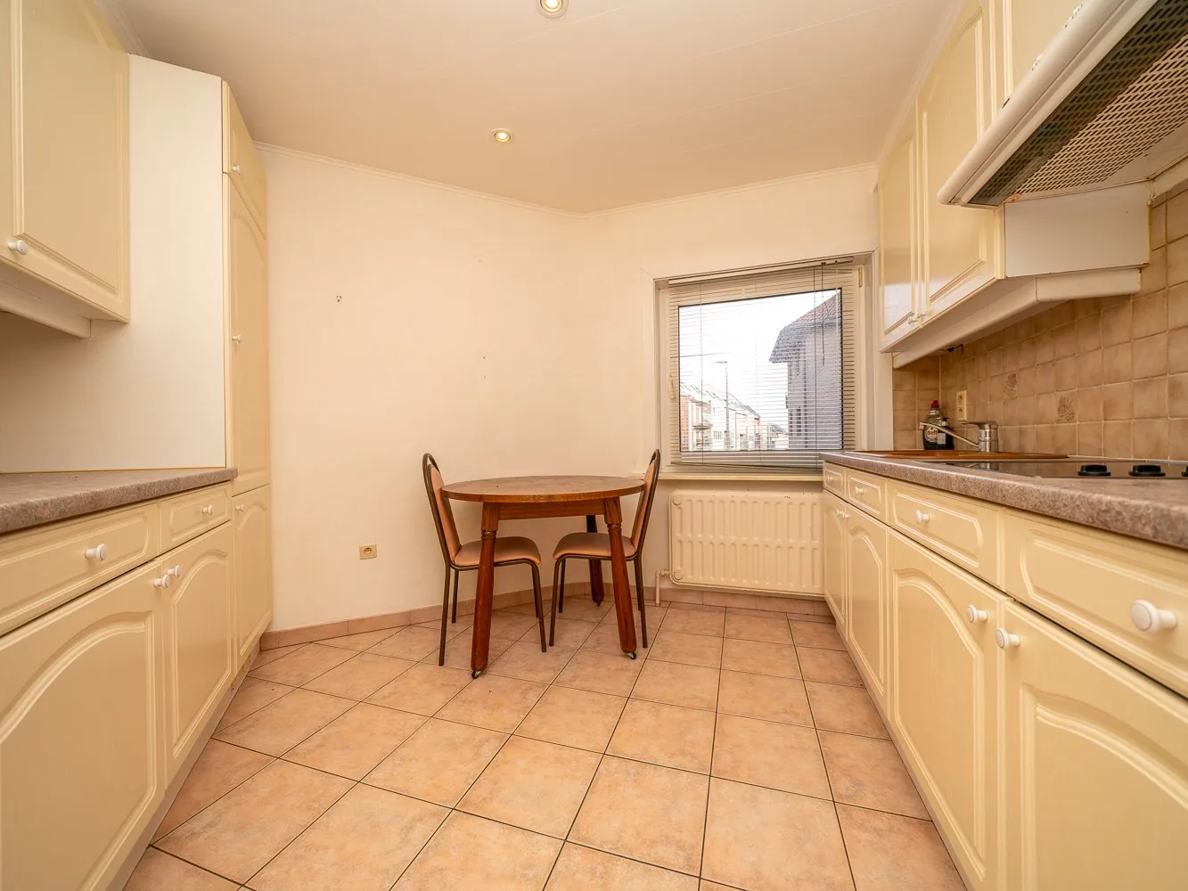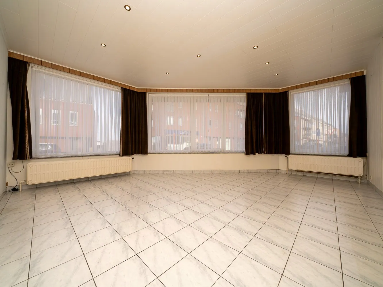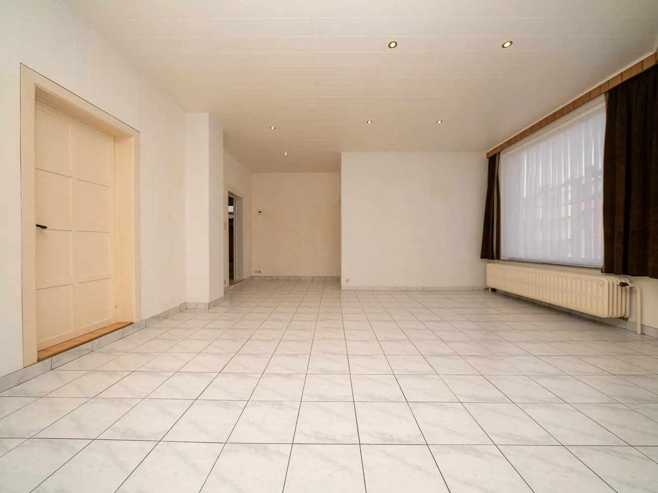 Het gelijkvloers appartement bedraagt 79m² en is hiermee ietsje kleiner dan het andere. Dit appartement heeft een ruime leefkamer en één slaapkamer met badkamer. Mits beperkte werken creëer je hier beneden opnieuw een koertje.
