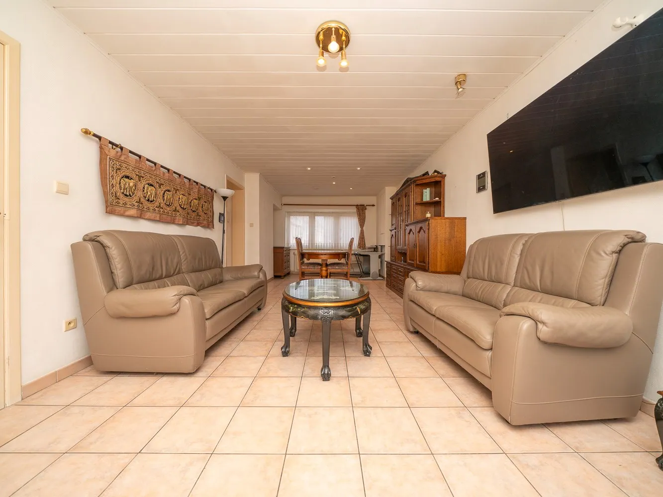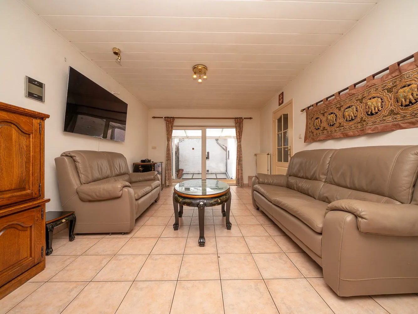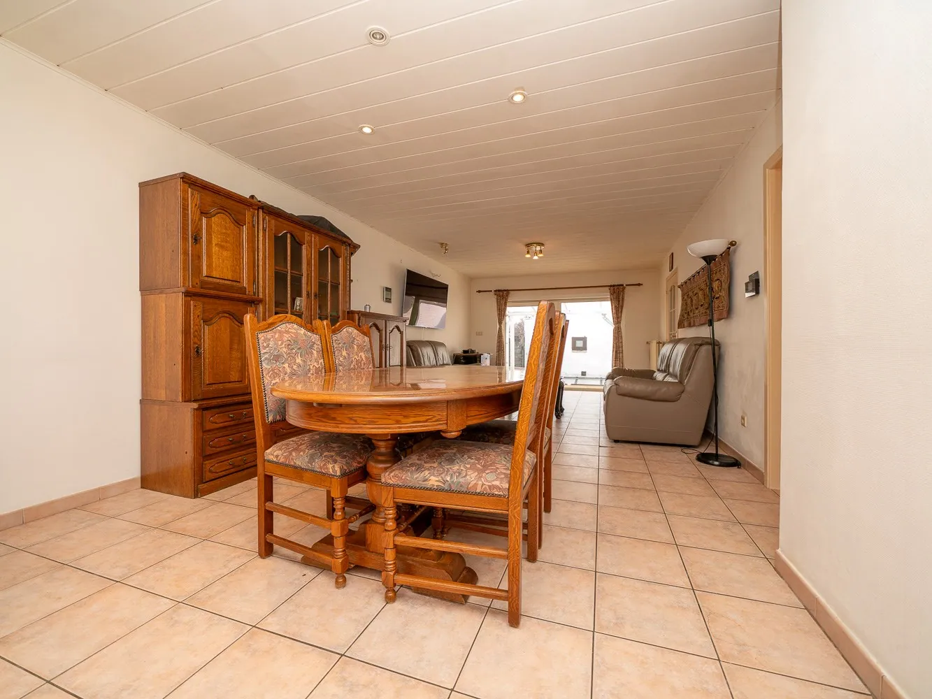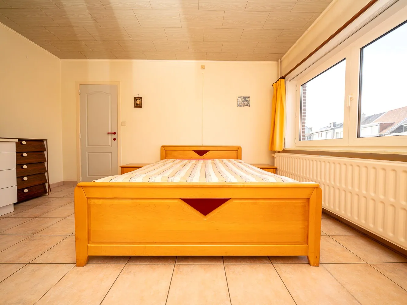 Het gelijkvloers appartement bedraagt 79m² en is hiermee ietsje kleiner dan het andere. Dit appartement heeft een ruime leefkamer en één slaapkamer met badkamer. Mits beperkte werken creëer je hier beneden opnieuw een koertje.