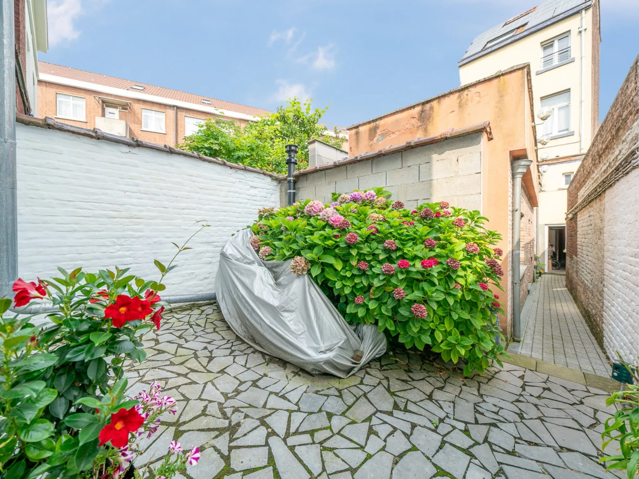 Via een voetgangerswegje hebben we toegang tot de achtergelegen woning.