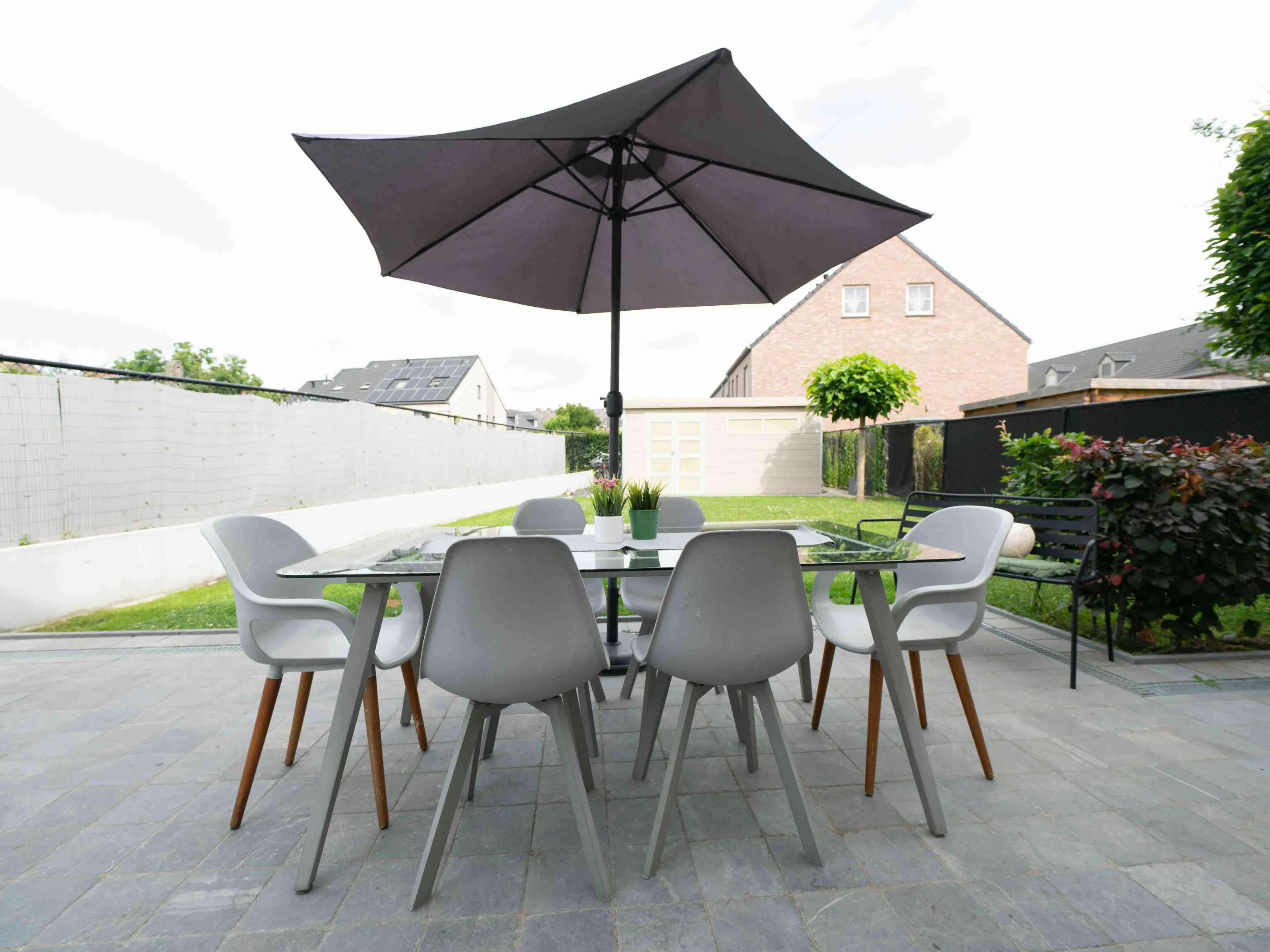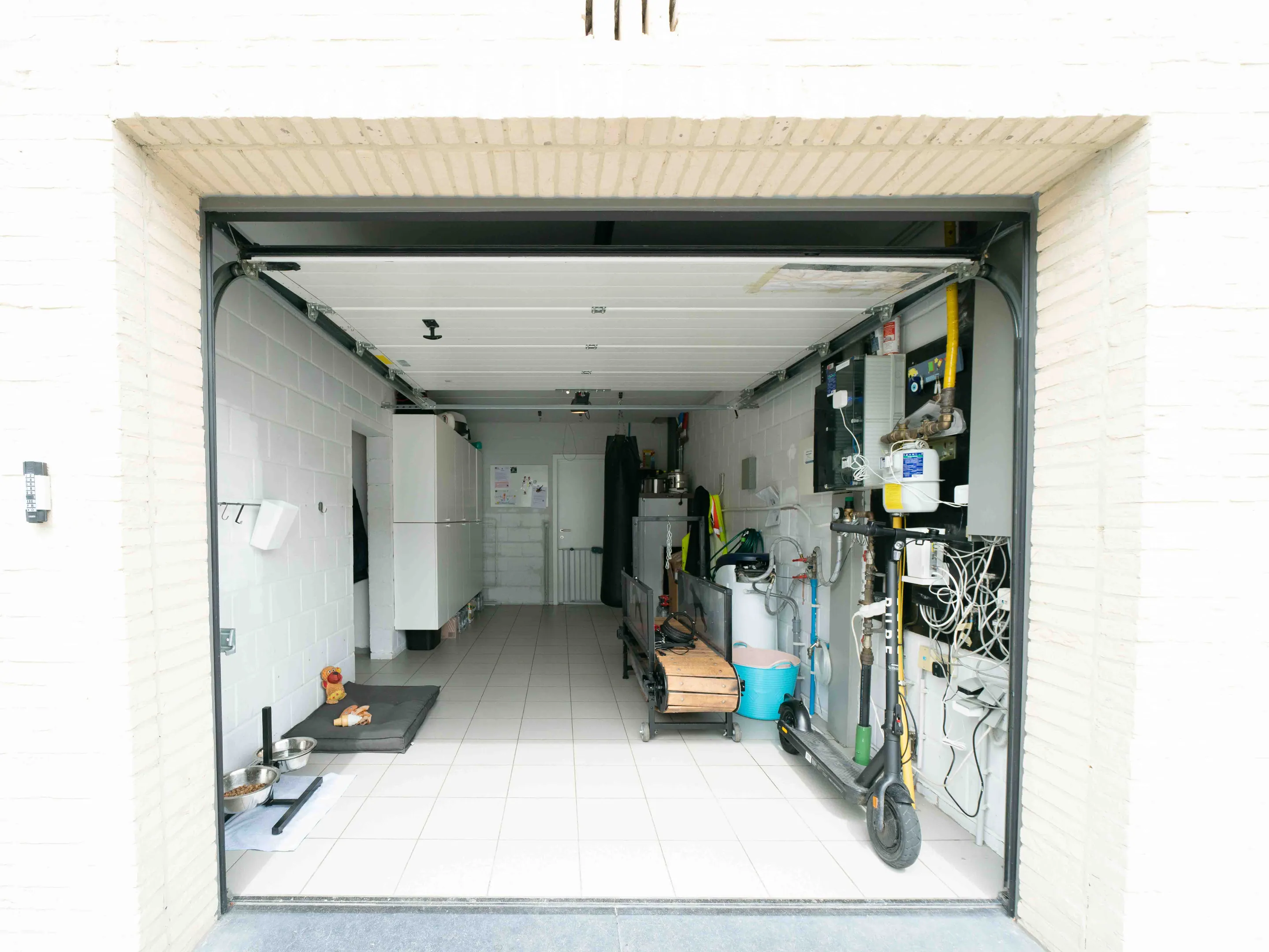 De garage biedt plaats voor één wagen, maar ook op de oprit en naast de woning kunnen makkelijk 5 auto’s geparkeerd worden. De ruime tuinberging is voorzien van verlichting en stopcontacten.