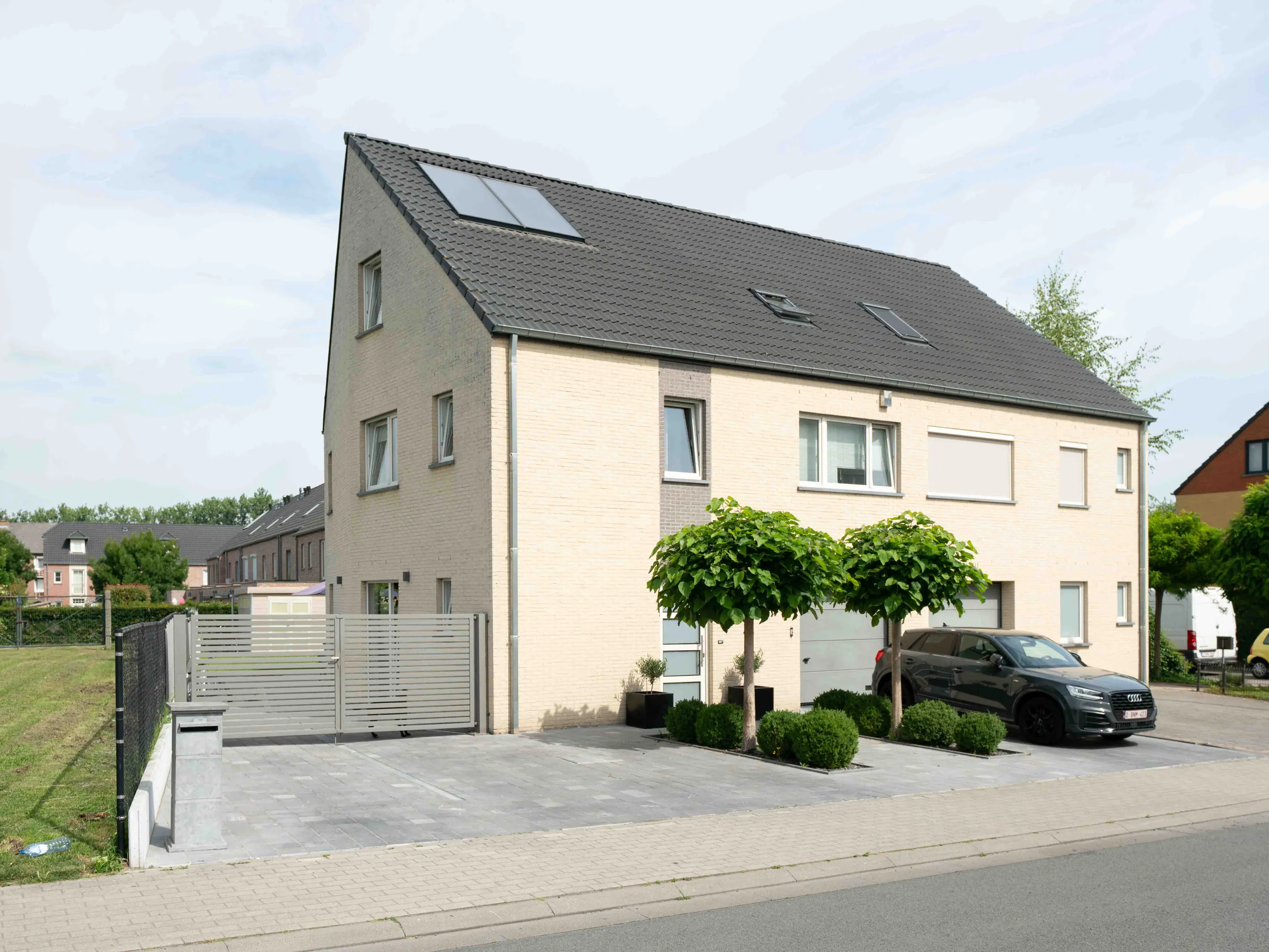 Verder is alle comfort aanwezig: de volledige woning is voorzien van een alarminstallatie, warmwatervoorziening via zonneboiler 400l, ventilatiesysteem D, regenwaterput 5.000l, waterverzachter, automatische garagepoort.
