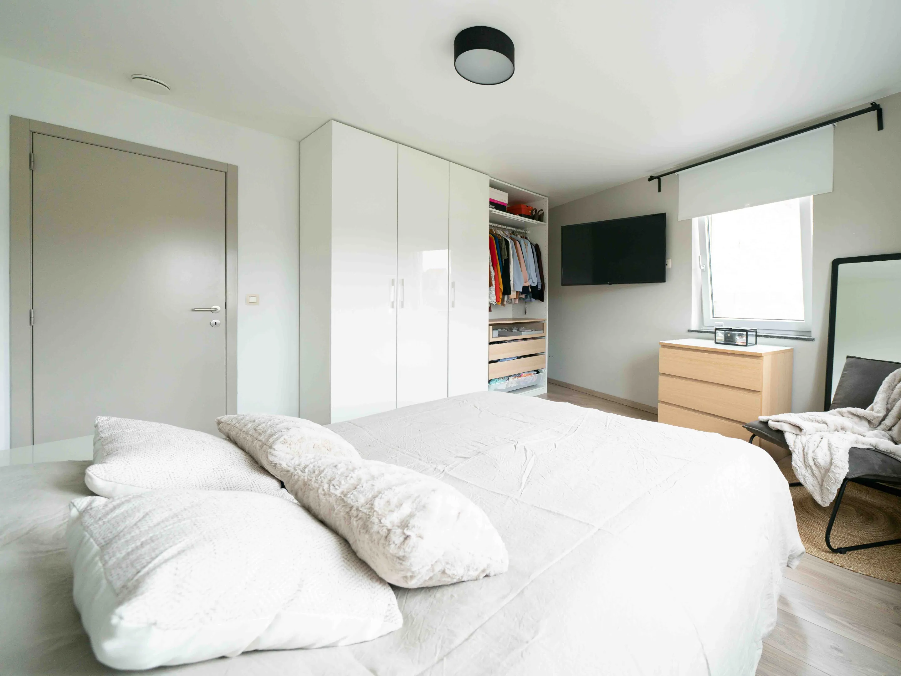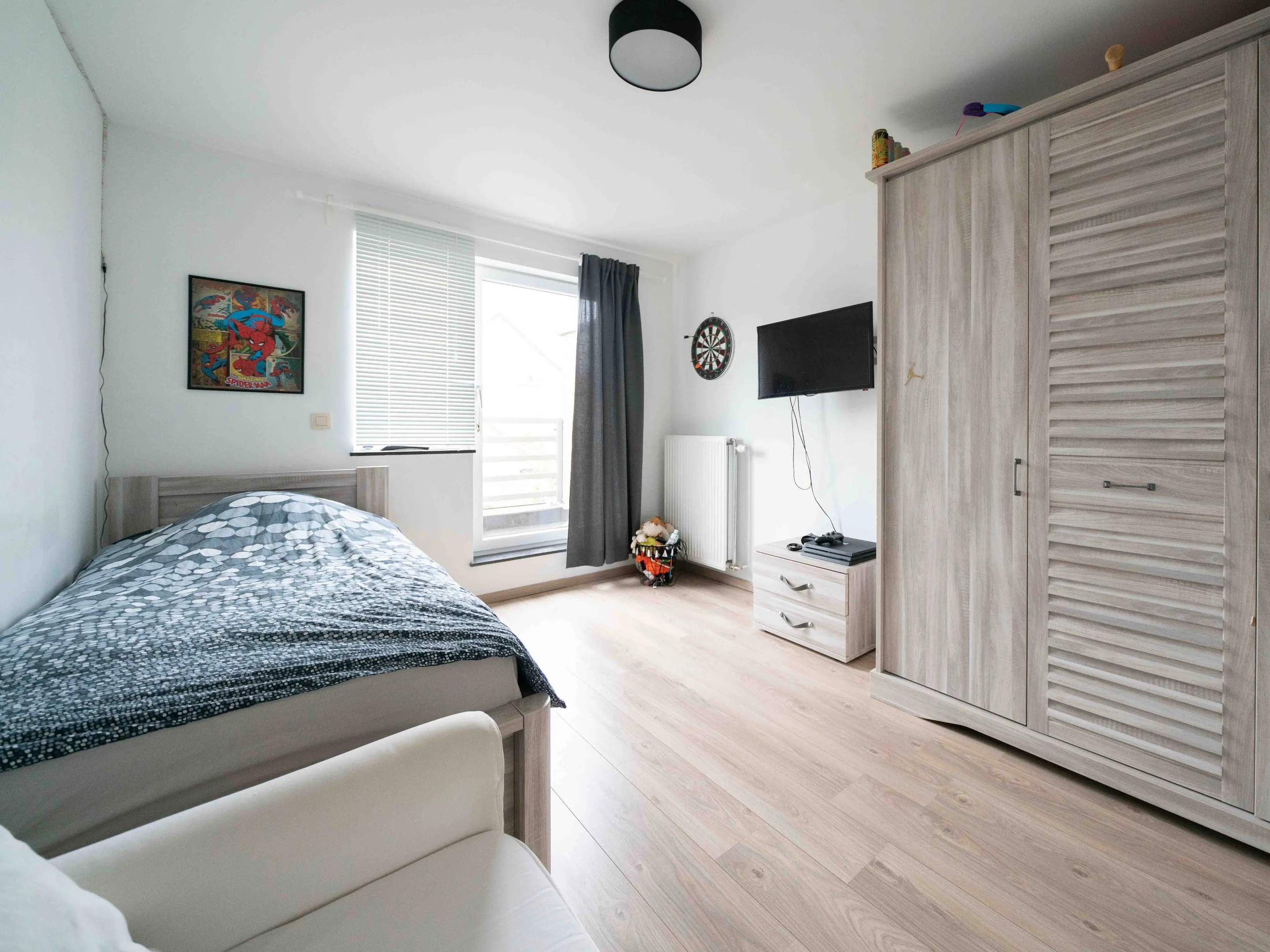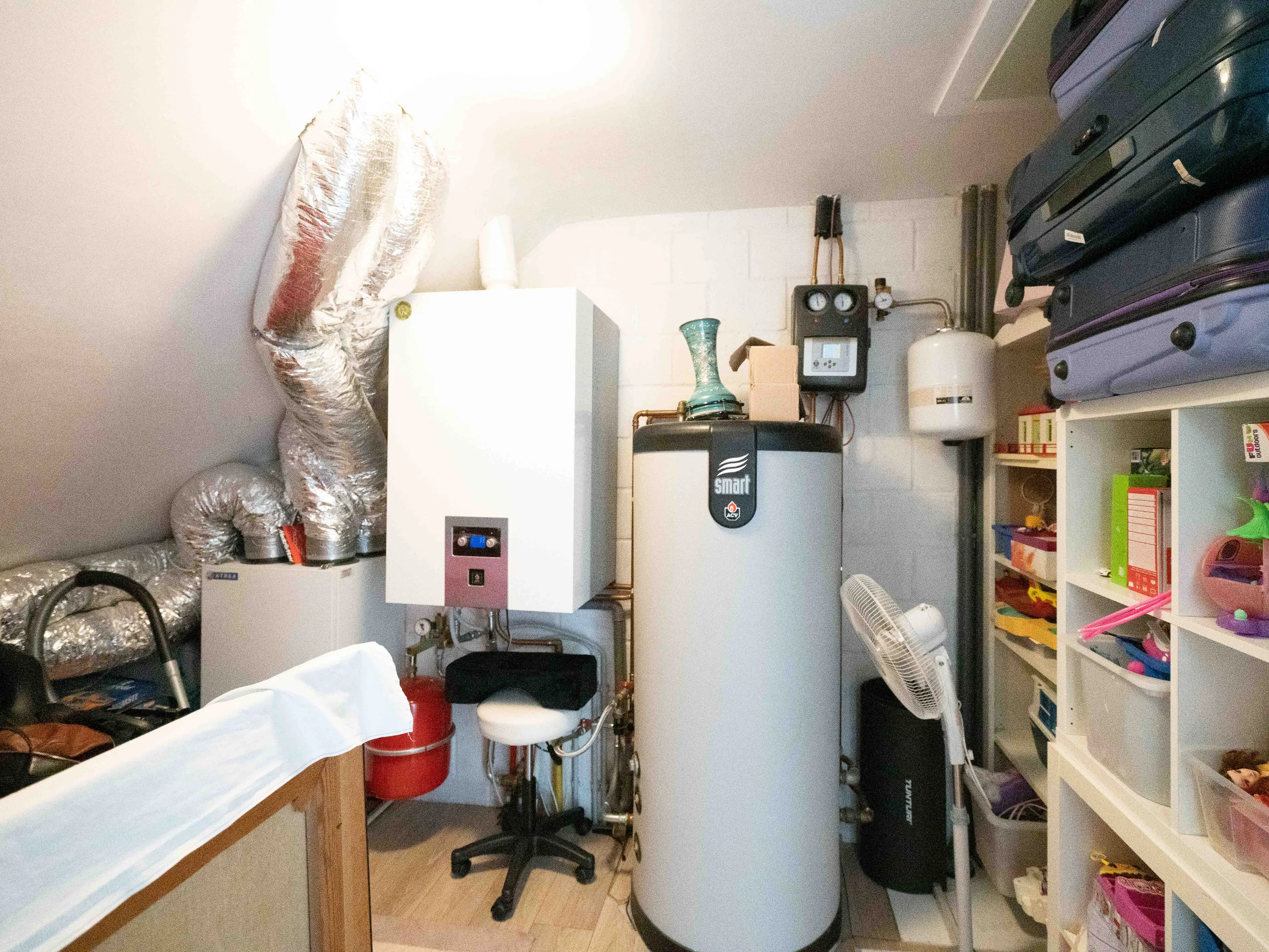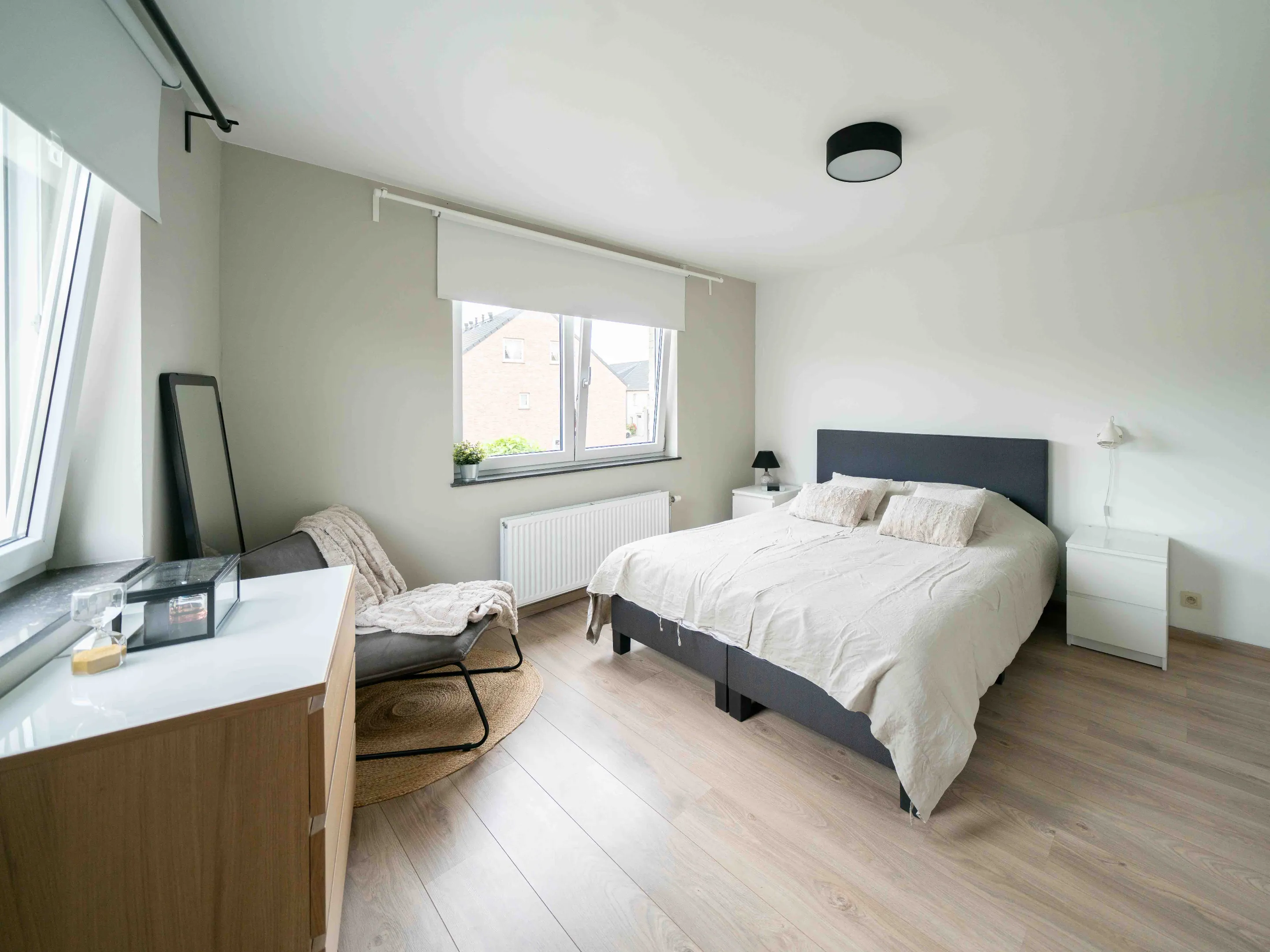 De tweede verdieping bestaat uit 3 slaapkamers (21m², 16m², 13m²) en een berging waar de condensatieketel, zonneboiler en ventilatiesysteem zich bevinden. De veluxen zijn zowel zonne- als lichtwerend.