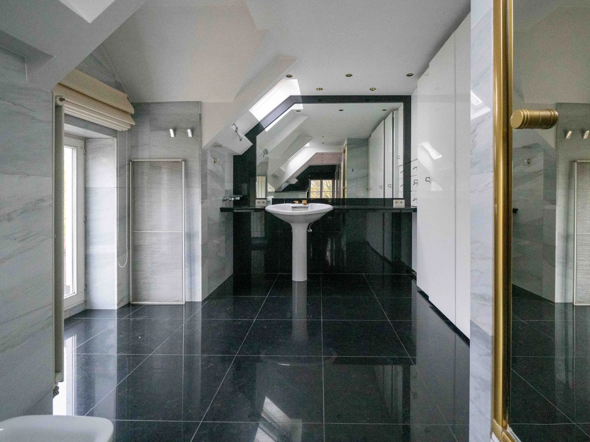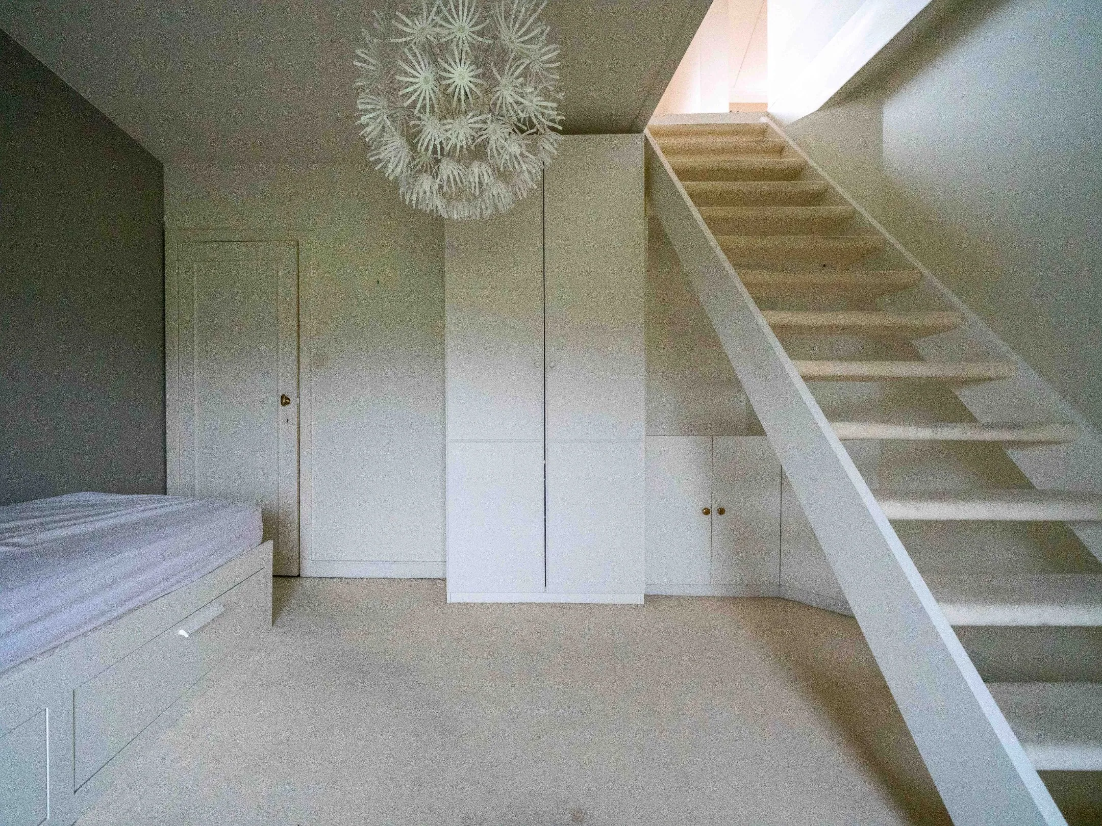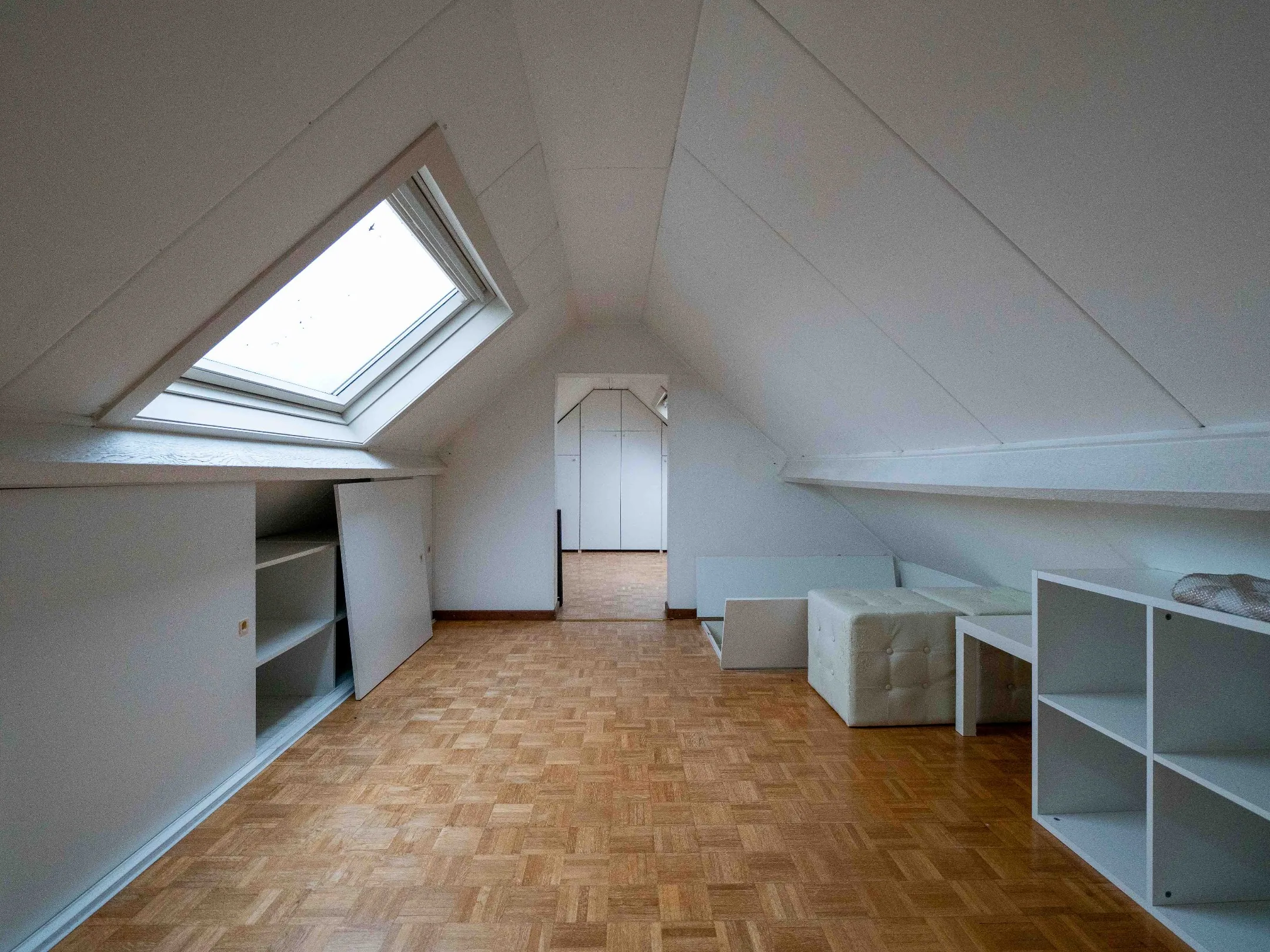 Via de authentieke trap gaan we naar de verdieping voorzien van een (jawel, giga) badkamer, een master bedroom en kinderkamer. De kinderkamer geeft op haar beurt toegang tot een 2de zolderkamer.