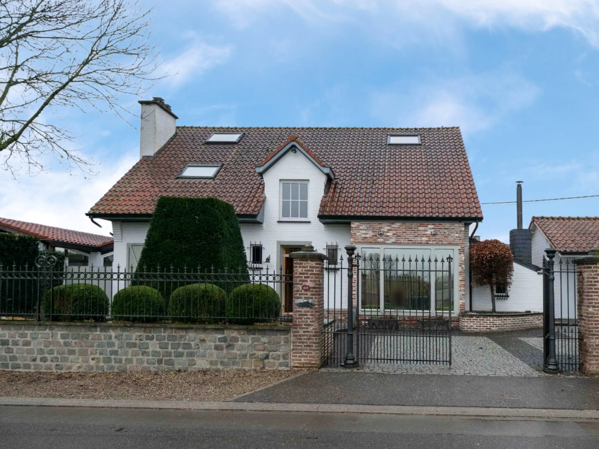 Rechts van de woning bevindt zich nog een dubbele garage met elektrische poort.