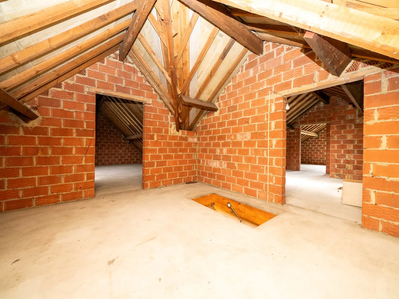 De woning is momenteel ingericht als bungalow: naast het leefgedeelte bevinden zich op het gelijkvloers een grote slaapkamer, twee kleinere kamers en een badkamer met ligbad en een tweede toilet. Volstaat dat niet voor jou? Dan is er nog de ruime inrichtbare zolder van maar liefst 89m².